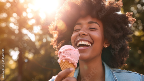 Radiant Joy of Summer Reflected in Ice Cream Enjoyment Outdoors