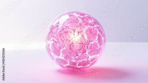 sphere, orb, pink, semitransparent, texture, light, glow, radiance, luminescence, surface, pattern, design, three-dimensional, digital, rendering, image, visualisation, abstract, geometric, shape, round, crystal, glasses, bubble, faceted, smooth, iridescent, colours, pastel, pale, soft, shiny, modern, contemporary, art, composition, object, glowing