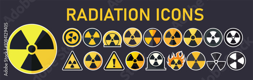 radiation, icon, symbol, hazard, warning, nuclear, danger, radioactive, atomic, industry, energy, signs, safety, alert, caution, risk, contamination, power, plant, science, technology, security, research, chemistry, physics, industrial, flat, design, vector, illustration, set, collection, bright, yellow, black