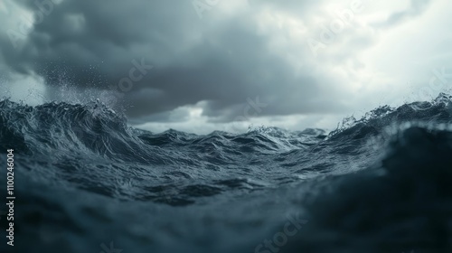Raging ocean waves amidst dark storm clouds nature scene dynamic environment dramatic viewpoint power of nature