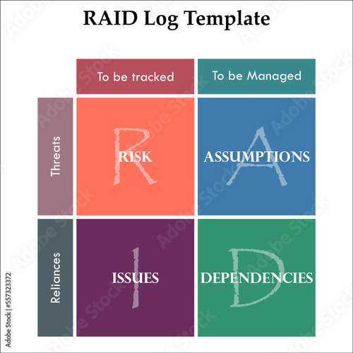 Raid Log Template in an Infographic template. Risk, Assumptions, Issues, Dependencies.