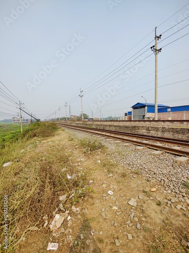 Railway tracks in the countryside of bangladesh selective focus point.