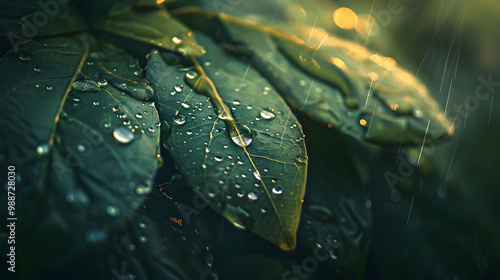 raindrop, green leaf, water droplets, natural beauty, closeup, rain, flora, freshness, dew drops, rainforest, tropical, foliage