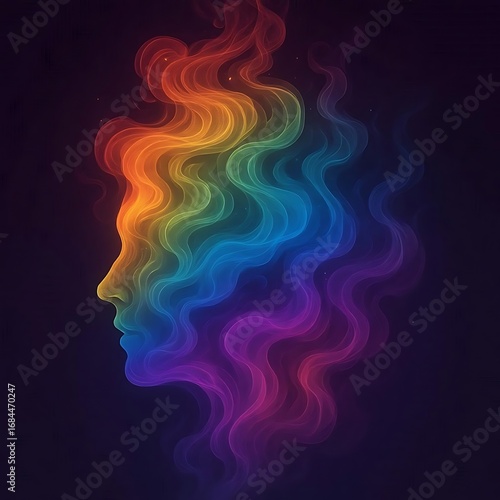 rainbow, smoke, human, profile, face, head, silhouette, colours, spectrum, vibrant, abstract, art, creative, concept, idea, imagination, dream, fantasy, spirituality, mind, consciousness, thought, emotion, feeling, expression, energy, light, dark, background, illustration, design, modern, artistic, surreal