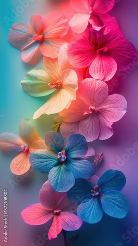 flower, floral, gradient, rainbow, colours, colourful, bloom, blossom, vibrant, spring, summer, nature, background, pattern, design, beautiful, pretty, art, closeup, soft, fresh, bright, decorative, magenta, blue, yellow, orange, pink, pastel, texture