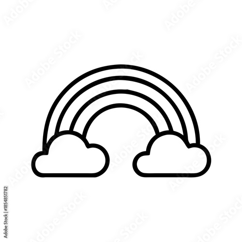 Rainbow with clouds in simple line art style