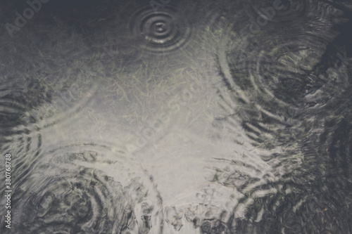 Raindrops falling of surface of the water