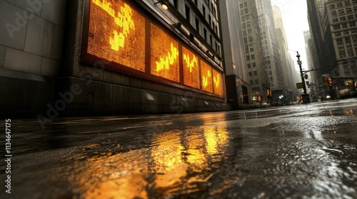 city, street, rain, water, building, urban, architecture, skyscraper, downtown, wet, asphalt, pavement, traffic, light, glow, glasses, window, signage, metropolis, concrete, dark, moody, damp, perspective, low, angle, view, modern, environment, city landscape, background, texture, detail, street light, transportation, journey, travel, way, road, lane, sidewalk, suppressing, grid, gridlock, rush, hours, day