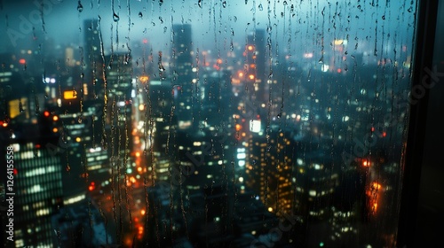 rain, city, night, window, city landscape, light, drop, view, building, urban, windowpane, wet, glasses, dark, blurred, background, metropolis, skyscraper, street, city landscape, water, texture, pattern, abstract, design, modern, architecture, photo, image, graphic, illustration, scene, mood, atmosphere, evening, twilight, rainy, season, weather, japan, asia, travel, earth
