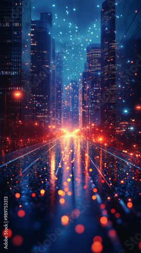 city, night, rain, street, light, building, bokeh, urban, long exposure, wet, city landscape, nightlife, modern, architecture, street light, raindrop, glowing, dark, abstract, blue, red, orange, dark blue, night sky