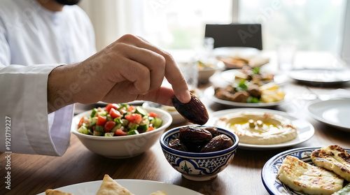 ramadan, food, healthy, dinner, table, meal, date, traditional, delicious, fasting, dinnerware, middle, eastern, arabian, celebration, muslim, religion, cookery, dish, salad, vegetable, fruit, soup, bread, kitchen, background, wooden, home, evening, sunset, family, togetherness, culture, prayer, holy, month, feast, appetiser, olive, nourishment, fresh, epicure, lifestyle, hospitality, mediterranean, spirituality