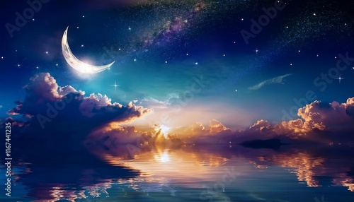 Ramadan Kareem Lanterns and Crescent Moon Decoration Backgrounds