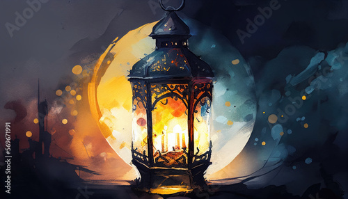 ramadan, islam, muslim, religion, month, celebration, watercolor, arabic, festival, religious, mosque, holy, lantern, gold, lamp, banner, pray, tradition, card, background, design, festive, glow, greeting, illumination, holiday, moon, ornament, ornate, sacred, ai, night, allah, copy space, illustration, three-dimensional, arabian, star, poster, no people, graphic, islamic, turkish, culture