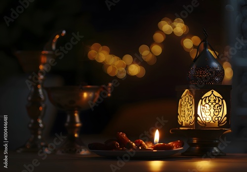 ramadan, lantern, candle, date, arabic, lamp, islam, muslim, festival, holiday, celebration, culture, tradition, faith, spirituality, light, dark, background, minimalistic, gold, glow, ornamental, decoration, pattern, design, food, sweet, fruit, table, setting, mood, atmosphere, religious, holy, blessing, peace, love