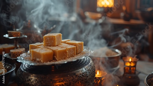 Ramadan muslim holiday background wallpaper design, food, sweets, cake, cookies, baklava, kunafa, Qatayef, halva, close up, sweet, sugar, eid al, stock photo