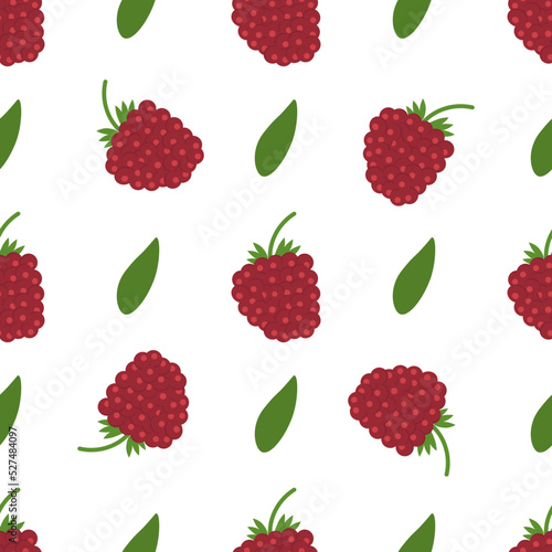 Raspberry pattern in flat style on white background