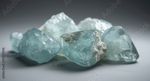 Raw aquamarine crystals in light blue with uncut irregular shapes