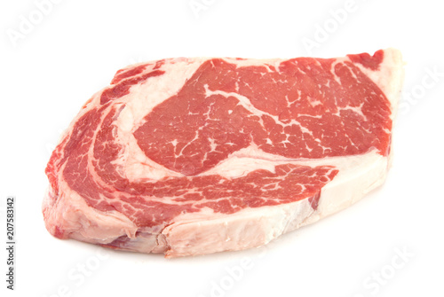 Raw Rib Eye Steak on a White Background