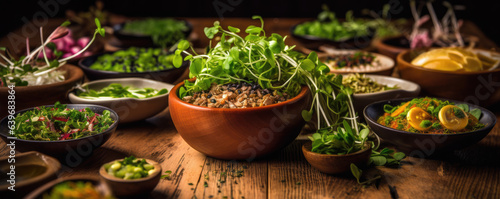 vegetable, herb, green, healthy, salad, vegan, food, fresh, organic, leaf, vegetarian, diet, natural, raw, bio, arugula, eating, ingredient, nature, seed, tomatoes, agriculture, plant, growing, health, herbal, lunch, mix, nourishment, health food, radish, rustic, germinating, young, freshness, meal, pepper, background, bowl, closeup, cookery, delicious, dinner, dish, garden, plate, generative