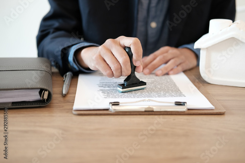 real estate agent stamping approved on mortgage loan contract agreement document