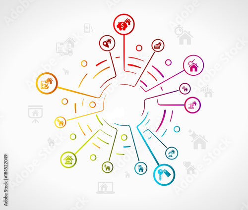 real estate, real, estate, buy, sell, rent, grid, network, colourful, icon, vector, abstract, illustration, background, concept