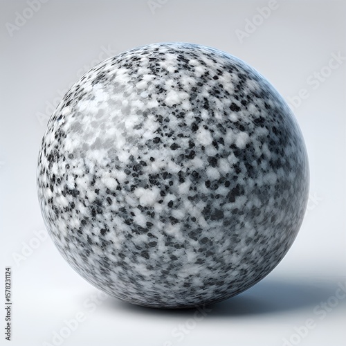 Realistic 3D sphere showcasing a speckled gray and white granite texture in clean studio lighting.