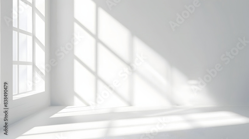 realistic and minimalist blurred natural light windows shadow overlay on wall paper texture abstract background minimal abstract light white background for product presentation