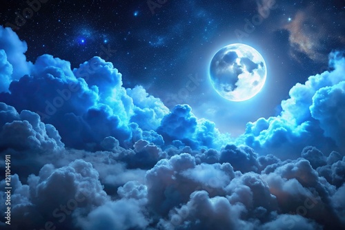 Realistic digital blue night clouds, isolated; celestial elements for photorealistic sky compositions.