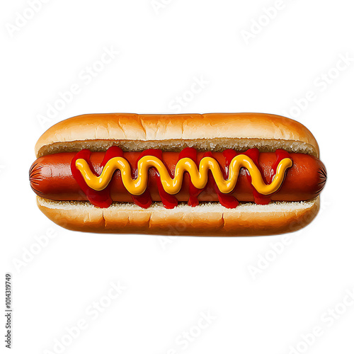 Realistic Hot Dog with Mustard and Ketchup Topping