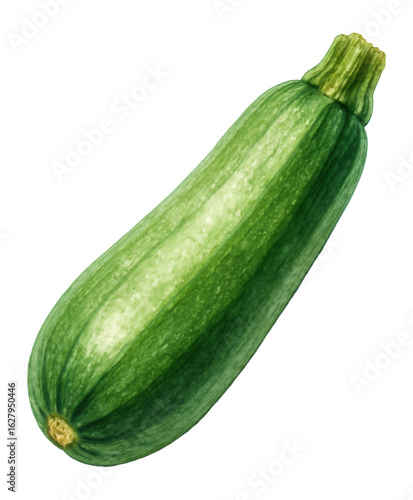 Realistic illustration of a whole green zucchini with a glossy texture, showcasing its vibrant color and texture on transparent background.