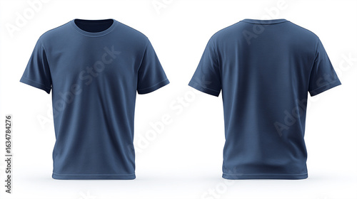 Realistic Light blue t-shirt mock-up template including 3D t-shirt mock-up double views. Polished collar, flowing sides, subtle shading