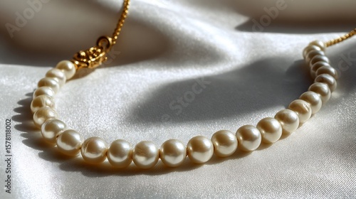 realistic, pearl, necklace, gold, clasp, baroque, pearl, fine, luster, classic, elegance, close, up, shot, white, silk, background, wedding, jewellery, minimal, luxury, high, quality, light, fashion, accessory, metal, diamond, gold, elegant, ornament, design, decorative, hand-made, silver, beauty, gemstone, bracelet, earring
