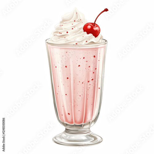 milkshake, strawberry, drink, beverage, dairy, smoothie, creamy, cold, refreshing, sweet, dessert, indulgence, cherry, glasses, thick, rich, delicious, tasty, fruity, ice cream, glacé, blended, epicure, treat, cafes, summer, chilled, frothy, light, airy, smooth, sugar, cool, fresh, berry, detailed, realistic, three-dimensional, illustration, isolated, background, transparent, generative