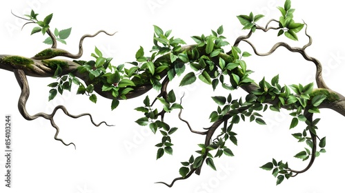 realistic twisted jungle branch with plant growing isolated on a white background