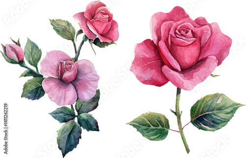 Realistic Watercolor Pink Rose – Garden-Inspired Flower Illustration