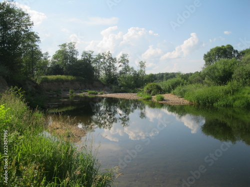 water, lake, nature, river, sky, landscape, summer, blue, forest, tree, green, duck pond, tree, cloud, cloud, park, grass, outdoors, calm, russia, tranquil, stream
