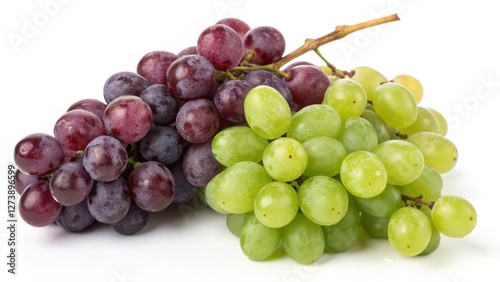 grape, red, green, fruit, bunch, berry, vine, flocked, food, isolated, white, background, studio, photo, object, healthy, diet, nourishment, vitamin, sweet, dessert, agriculture, harvest, freshness, ripe, juicy, delicious, organic, natural, produce, still life, colours, contrast, macro, texture, detail, stem, image, visual, digital, asset