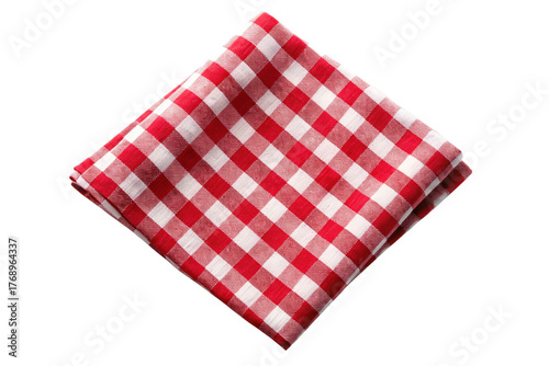 Red and white checkered napkin isolated on transparent background, kitchen concept