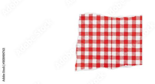 Red and white gingham fabric swatch with torn edges isolated on a transparent background checkered textile