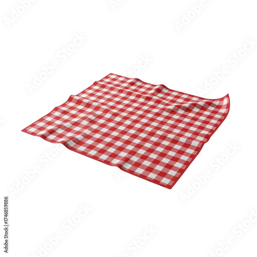 Red and white gingham picnic blanket folded flat ready for outdoor adventures and gatherings transparent background