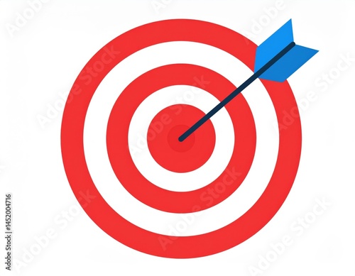 target, arrow, red, white, blue, aim, goal, success, achievement, sharpened, accuracy, precision, business, strategy, planning, motivation, circular, graphic, design, icon, simple, minimalist, colourful, vector, illustration, flat, geometric, digital, concept, aiming