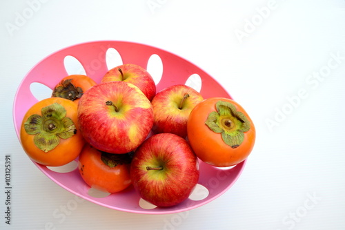 Red Apple and Persimmon in Basket