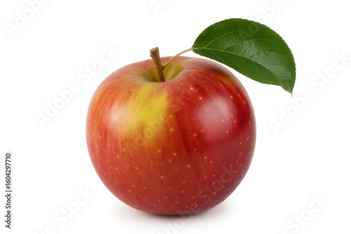 apple, red, green, leaf, fruit, fresh, healthy, food, nourishment, natural, organic, produce, sweet, juicy, crisp, whole, single, studio, white background, isolated, healthy eating, snack, ingredient, seasonal, harvest