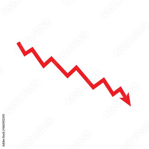arrow, downward, trend, decayed, red, chart, graph, stock, market, finance, economy, loss, decrease, fall, negative, business, datum, statistic, performance, recession, downturn, crash, sale, profit, investment, financial, economic, vector, icon, illustration