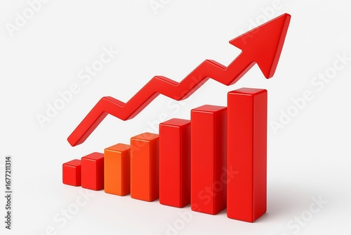 growth, progress, upward, arrow, chart, bar, datum, statistic, finance, business, success, increase, profit, revenue, performance, trend, rising, positive, economy, investment, stock, market, analysis, report, concept, illustration, three-dimensional, red, white, background, studio, shot, isolated, gain, development, improvement, advancement, financial, marketing, sale, strategy, goal, achievement, economic, graph, increasing