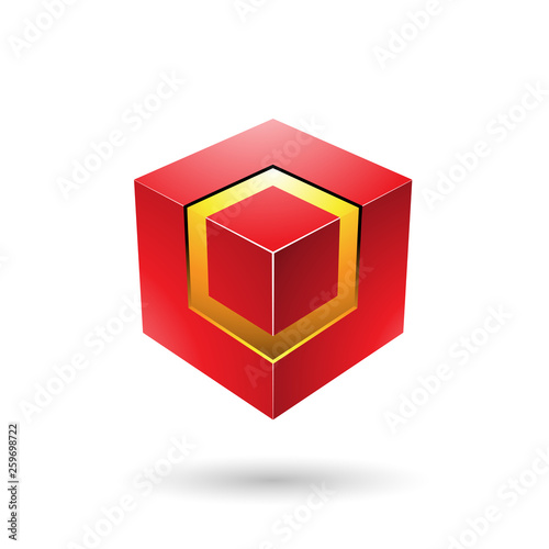 Red Bold Cube with Glowing Core Vector Illustration