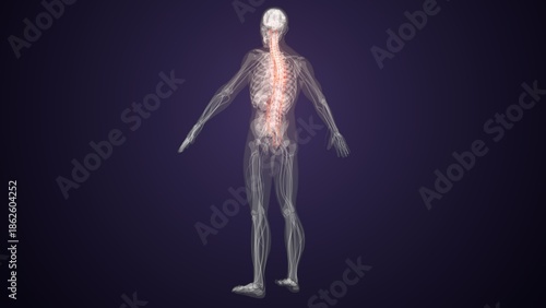 Red colour spinal cord nerves with colourful background. 3d render