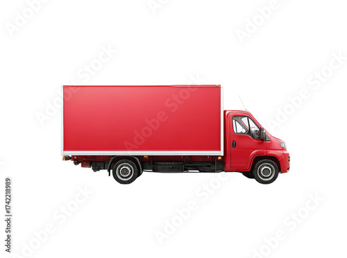 red, truck, delivery, cargo, van, box, transportation, logistic, shipping, freight, commercial, vehicle, service, isolated, black, side, studio, shot, colours, blank, template, design, business, industry, automotive, good, shipment, lorry