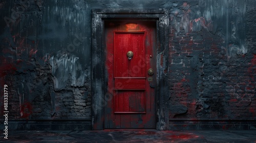 Red door and a wall in dark tones, Paint it black lyrics