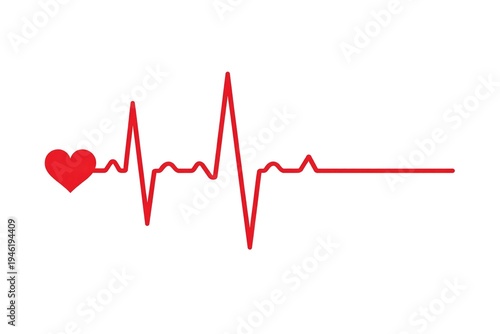 Red electrocardiogram heartbeat with a heart line pulse cardiology health medicine heart rhythm cardiac symbol minimalist illustration vital sign monitoring rhythm of life